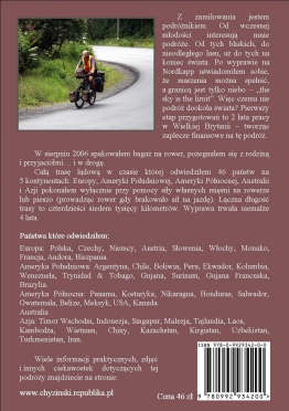 Drogi czytelniku, część pierwsza rowerowej podróży "dookoła świata" została spisana i opublikowana. :) Mam nadzieję, że lektura tej książki poprawi Tobie humor, sprawi że zaczniesz się zastanawiać, a może wręcz zainspiruje do wyruszenia w nieznane. Zagłębiając się w jej tekst będziesz mógł przenieść się w świat zwariowanej podróży z niewielką kwotą pieniędzy, ale za to pełnej radości życia, dobrych ludzi i przygód. Jest czasami trochę niebezpiecznie, ale wszystko dobrze się skończy. A w drugiej części pojawi się również wątek miłosny... Może nie masz czteroletniego urlopu, kredyt w banku też zobowiązuje, ale z tą książką poznasz jak naprawdę wyglądają kraje, ludzie w nich mieszkający, przyroda, itp.